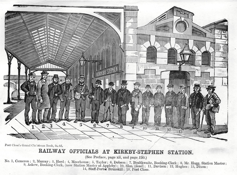 Officials at Kirkby Stephen Station (east) drawn and published by Poet John